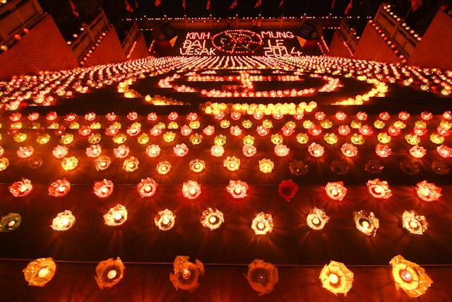 Những đêm hoa đăng nhiệm màu, những chiếc đèn hoa đăng dâng lên chư Phật mười phương nguyện cầu chư Phật, chư Bồ Tát, Long Thiên Bát Bộ - Hộ Pháp Thiện Thần gia hộ cho Thế giới hòa bình, quốc thái bình an, chúng sinh an lạc,... là nét đặc sắc mang đậm phong cách truyền thống Phật giáo để lại ấn tượng hết sức tốt đẹp trong mùa Vesak.
