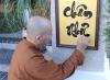 Tán dương người đã khắc tâm vào đá suốt 10 năm qua, Hòa thượng Thích Giác Toàn đã tặng nhà thư pháp hai câu thơ: