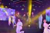 Nhạc phẩm Việt Nam Phật giáo sáng ngời hào quang do ca sĩ Phi Hùng và vũ đoàn Ngọc Việt mở đầu cho chương trình ca nhạc đêm nay.