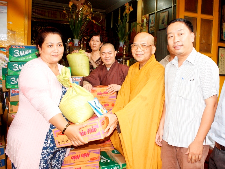 Nhân mùa Vu lan - Báo hiếu, chiều ngày 28-8, tại chùa Liên Ứng (P.11, Q.Bình Thạnh, TP.HCM), TT. Thích Như Tại, trụ trì chùa phối hợp UBMTTQVN phường 11 tổ chức, đã trao tặng 120 phần quà đến các cụ già neo đơn, gia đình có hoàn cảnh khó khăn trên địa bàn.