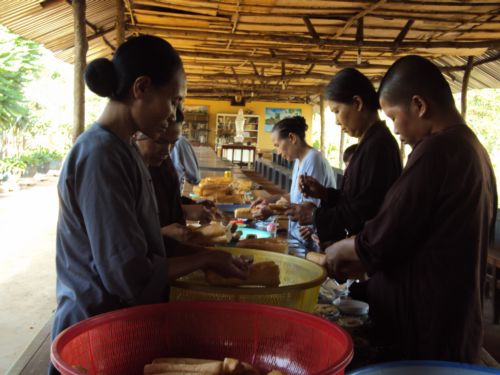 Chúng ta đi đúng dòng đời theo quy luật tự nhiện, còn Thầy Cô ở đây đi ngược dòng đời. Họ bỏ mái tóc xanh, bỏ trần tục, bỏ tất cả mọi thou danh vọng tiền tài…, ít nhất Thầy Cô thọ 10 giới và nhiều hơn là 250 giới.