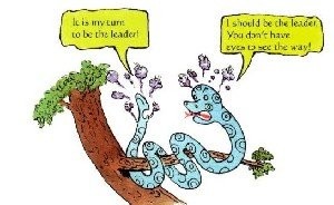 Đuôi con rắn đấu tranh với cái đầu rắn. Cái đuôi nói, “Bạn đã dẫn tôi đi lâu quá rồi. Giờ đây là lúc tôi sẽ dẫn bạn đi.”