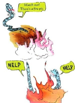 Cái đầu không muốn giúp đỡ cái đuôi. Cái đuôi không nhìn thấy nơi chốn nào để đi. Rồi nó rơi vào một căn hầm lửa. Rắn bị cháy thiêu đến chết.