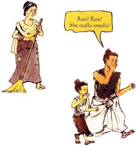 Một người đàn bà làm việc rất khó nhọc khi quét sạch các đường phố. Vì quần áo của bà ta bẩn thỉu và hôi hám, tất cả mọi người đều chạy đi xa bà khi họ trông thấy bà.