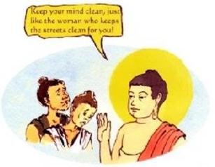 Đức Phật trả lời, “Mặc dù người đàn bà này hôi hám, tâm hồn bà ta thời trong sạch. Bà ta lễ phép và bà làm việc cực nhọc cho những người khác. Nhiều người trông sạch sẽ và gọn Oang, nhưng tâm hồn của họ lại đầy ắp những tư tưởng xấu!”