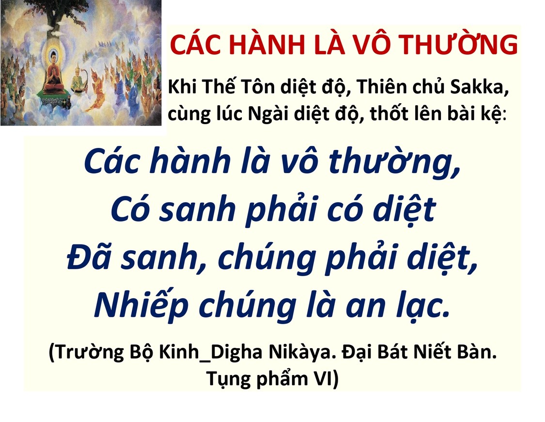 Khi Thế Tôn diệt độ, Thiên chủ Sakka (Đế Thích), cùng lúc Ngài diệt độ, thốt lên bài kệ này: