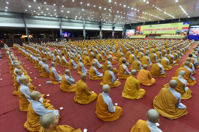 Sau đó, cả không gian chánh điện được bao trùm bởi nghi thức tụng Kinh Chuyển pháp luân.