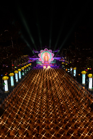 Chiều tối ngày 07/01/2015 (nhằm ngày 17/11 Giáp Ngọ), hàng chục ngàn thiện nam tín nữ Phật tử trong và ngoài nước đã tập trung về chùa Hoằng Pháp để tham dự đêm hội hoa đăng mừng ngày vía Đức Phật A Di Đà.