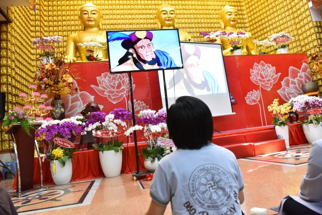 Trước khi vào chương trình tu học buổi chiều là 30 phút thực tập thiền do MC. Đại đức Thích Quảng Tịnh hướng dẫn để các bạn trẻ chuẩn bị tốt tâm lý cho cuộc thi trí tuệ ‘’ Hồi chống Pháp’’ do MC. Đại đức Thích Minh Thạnh chủ trì cùng các Thầy trẻ trong Tăng đoàn chùa Giác Ngộ hướng dẫn.
