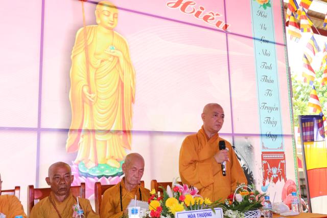 Đạo tràng vinh dự được lắng nghe lời đạo từ của HT. Thích Huệ Thông, Phó Tổng Thư ký kiêm Chánh Văn phòng II TƯGH, Trưởng Ban Trị sự GHPGVN tỉnh Bình Dương. Hòa thượng rất xúc động trước tấm lòng hiếu kính của quý Phật tử và Ngài nói rằng: Cách đây hơn 2600 năm, theo kinh điển đức Phật để lại, có một lần trên đường đi, đức Phật gục đầu và quỳ xuống lạy đống xương khô. Lúc bấy giờ, Ngài Anan hỏi: Bạch Thế Tôn! Tại sao Ngài phải lạy đống xương khô?.